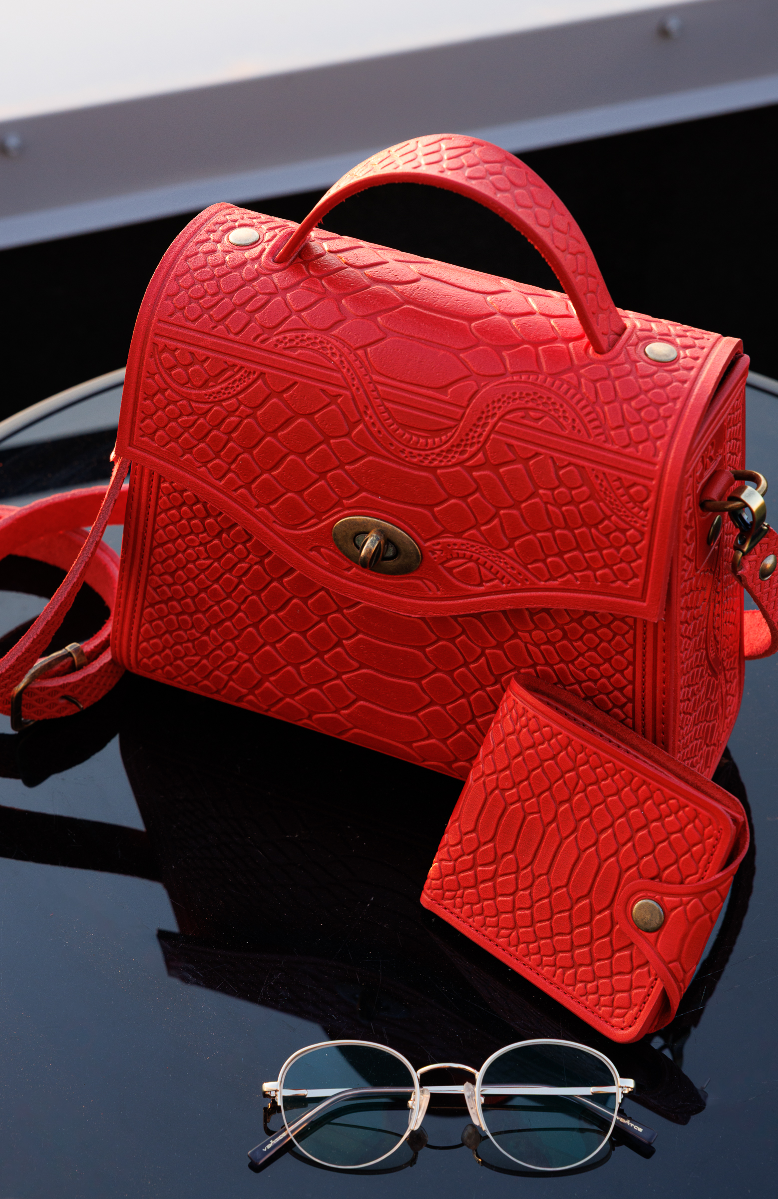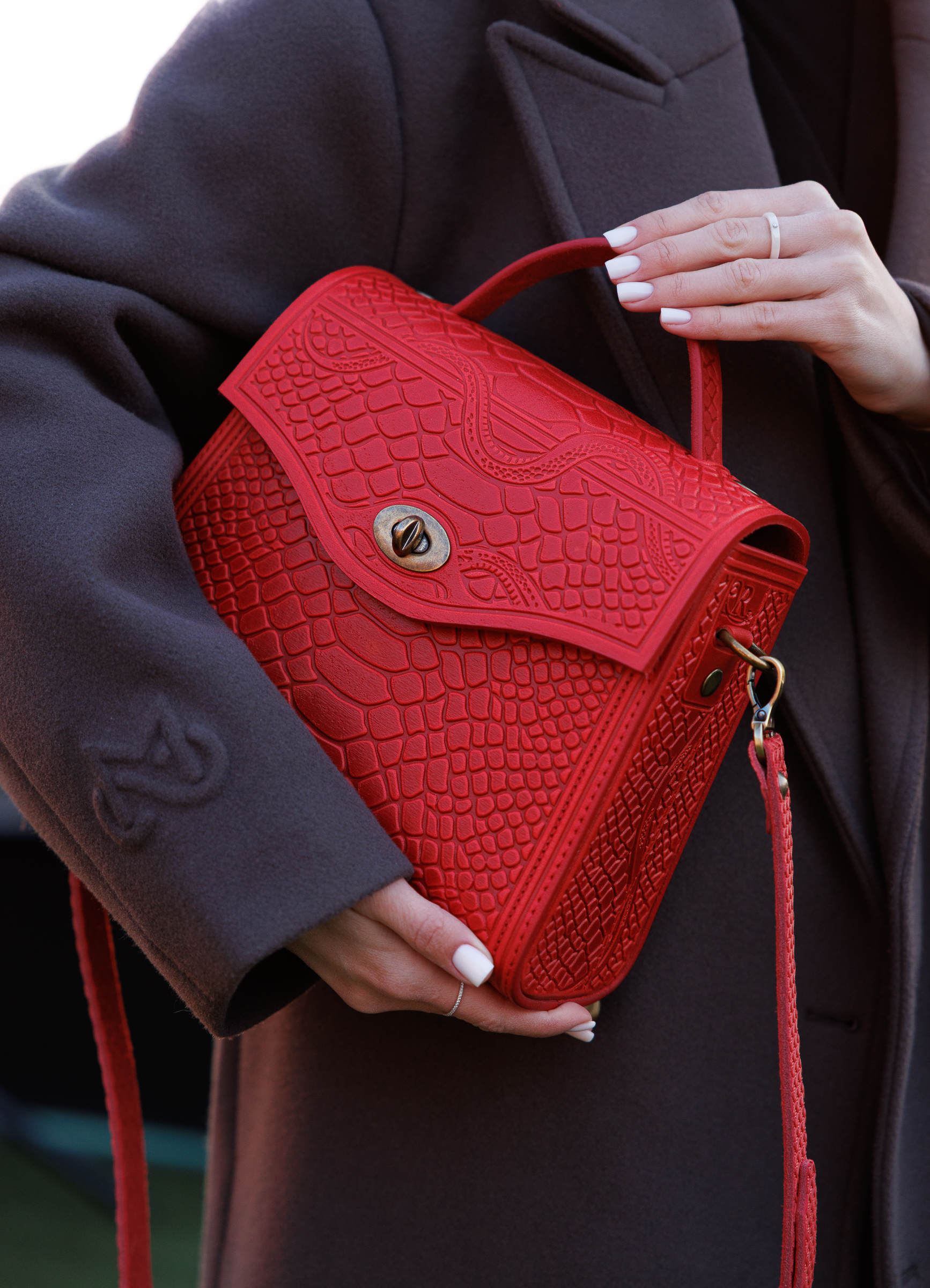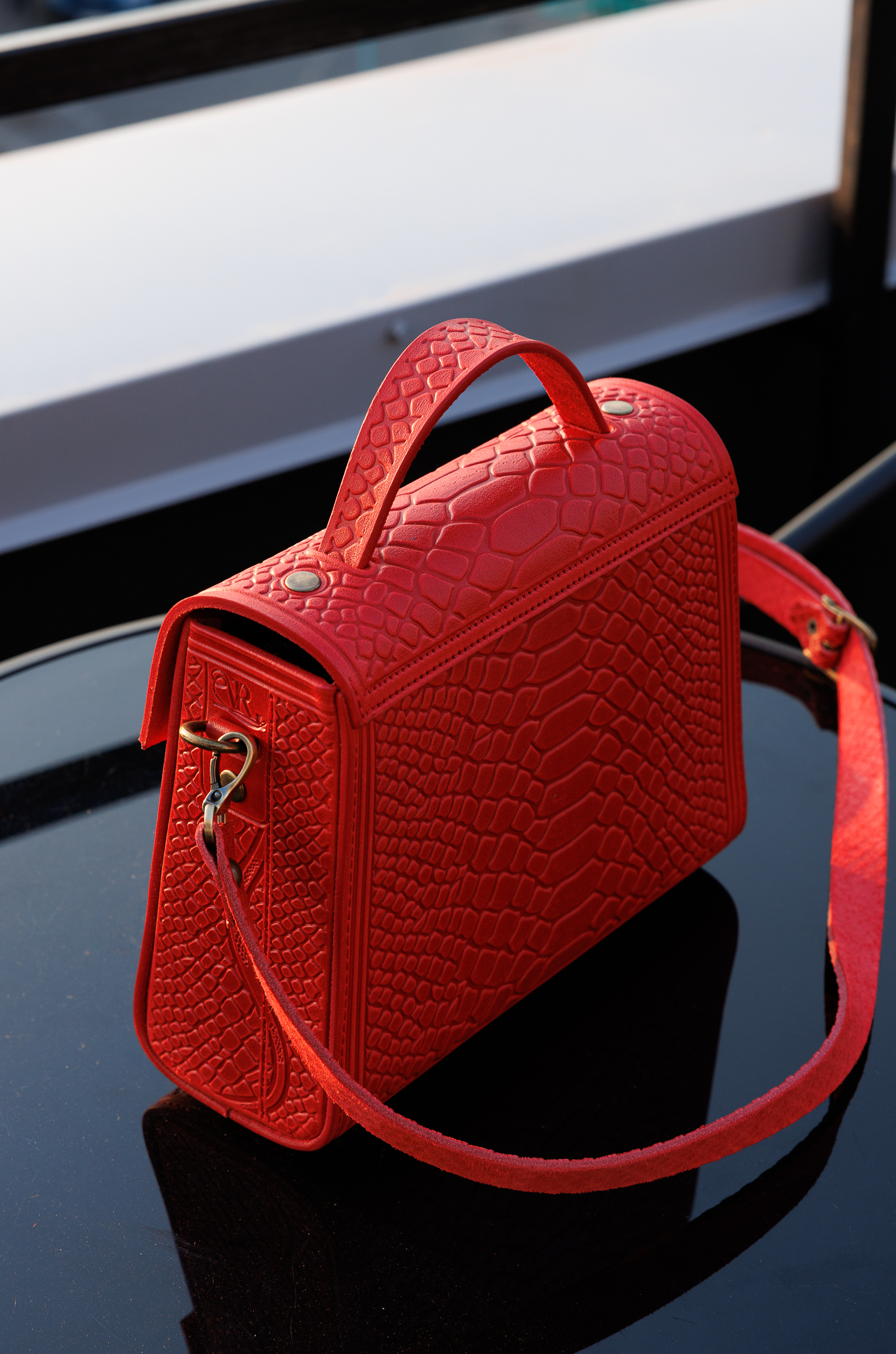Презентуємо вам нашу сумочку «Skinny [скінні]» із натуральної шкіри в тисненні рептилія з елементами також авторського тисненням .